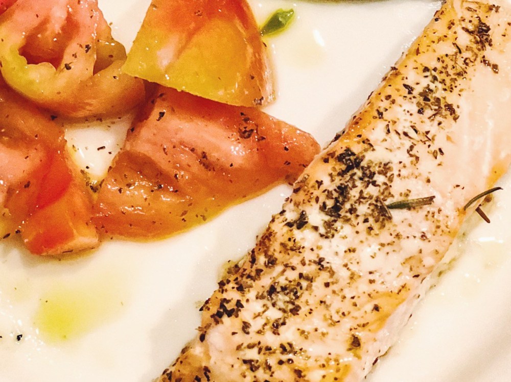 Io, spesso, preparo dei filetti di pesce, come ad esempio merluzzo, spigola o salmone, insaporendo con varie spezie – timo, alloro, rosmarino, prezzemolo, pepe nero e origano – aggiungo mezzo bicchiere di vino bianco e poi inforno per circa 10 minuti a 150°. Servite con verdure di stagione, io ho scelto dei pomodori con olio EVO e origano. Veloce e molto gustoso!
