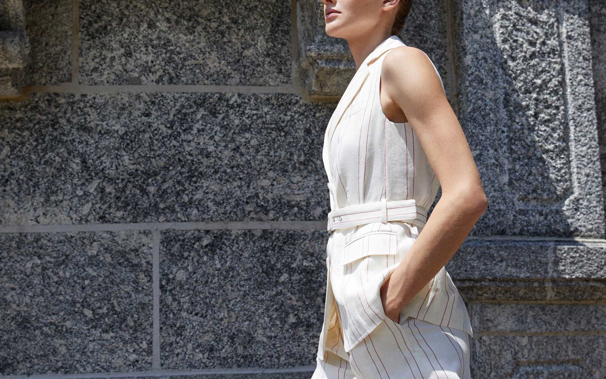 E c’è l’spirazione al grande cinema d’autore italiano. Il fascino degli anni 60′ di Monica Vitti ne “L’avventura” di Michelangelo Antonioni con uno stile e un’eleganza pulita, curata e essenziale. E’ quel minimal chic, ripreso e valorizzato in un contesto nuovo e moderno. Protagonista della collezione: il lino. Morbido e leggero, pensando a una calda estate dai profumi esotici ma pur sempre elegante. Così come l’organza rigata e l’impalpabile cady di seta, ed ancora poplin di cotone fresco e compatto.