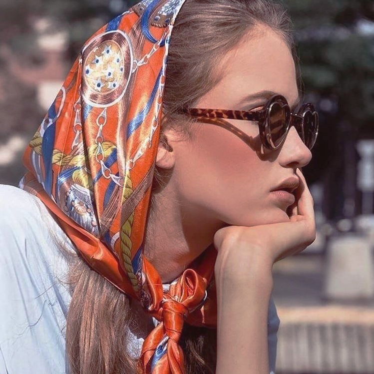 Il twill di seta ha mille utilizzi, sappiamo bene noi donne: come cintura, al collo, sui capelli, alla borsa… Foulard